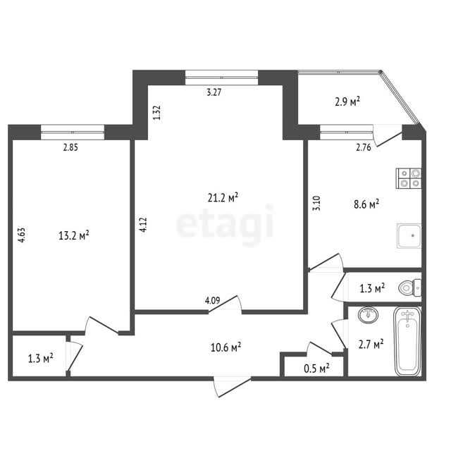 - Площадь кухни21.2 м²